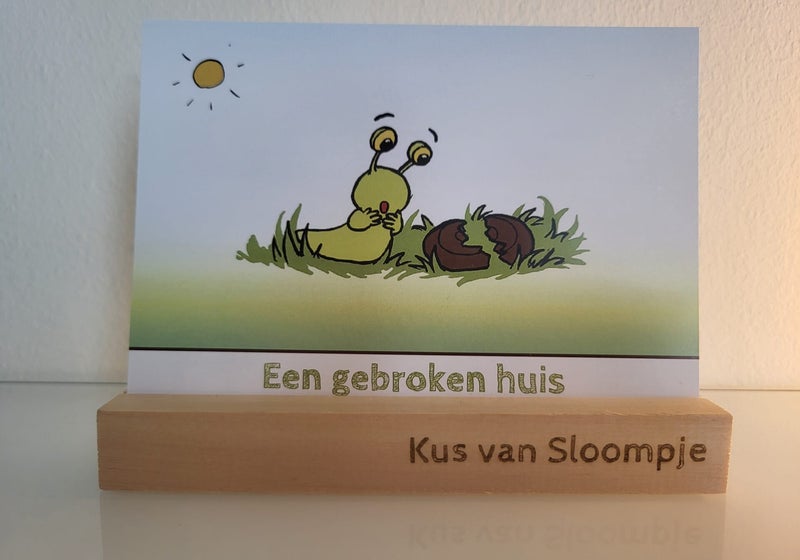 Sloompje Slak beleeft een avontuur dat overeenkomsten vertoont met het 'avontuur' van je kind dat gescheiden ouders heeft. Je kind zal zich hierin herkennen. Wederom een belangrijk punt in verwerking van de scheiding. De QR code op de postkaart brengt het kind naar de webpagina waar telkens een nieuw mini-luisterverhaal staat.